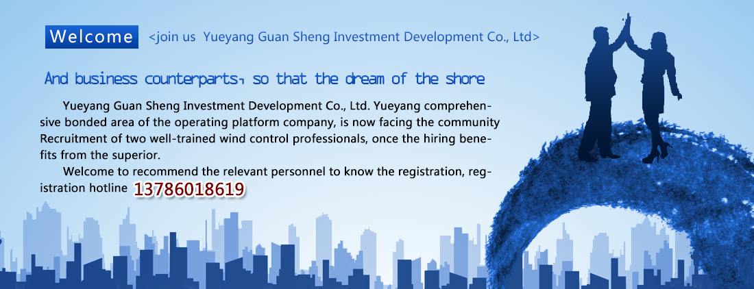According to conference spirits and related stipulations of Working Committee of Chenglingji Comprehensive Bonded Zone, combined with fast development and talent demands, Yueyang Guansheng Investment Development Co now is openly recruiting some professional skilled talents, with related plans and programs as follows.